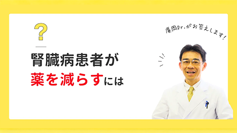 外注2-⑩ 腎臓病では薬の数が増えやすく、特に6種類以上になると副作用のリスクが高まります。ふらつきや物忘れなどは加齢ではなく薬の影響のこともあります。薬は必要ですが、体の状態によって効果が変わるため、目的を理解し、医師と相談しながら適切に調整することが大切です。